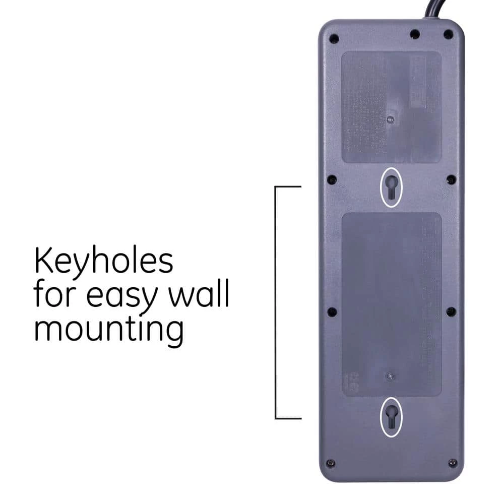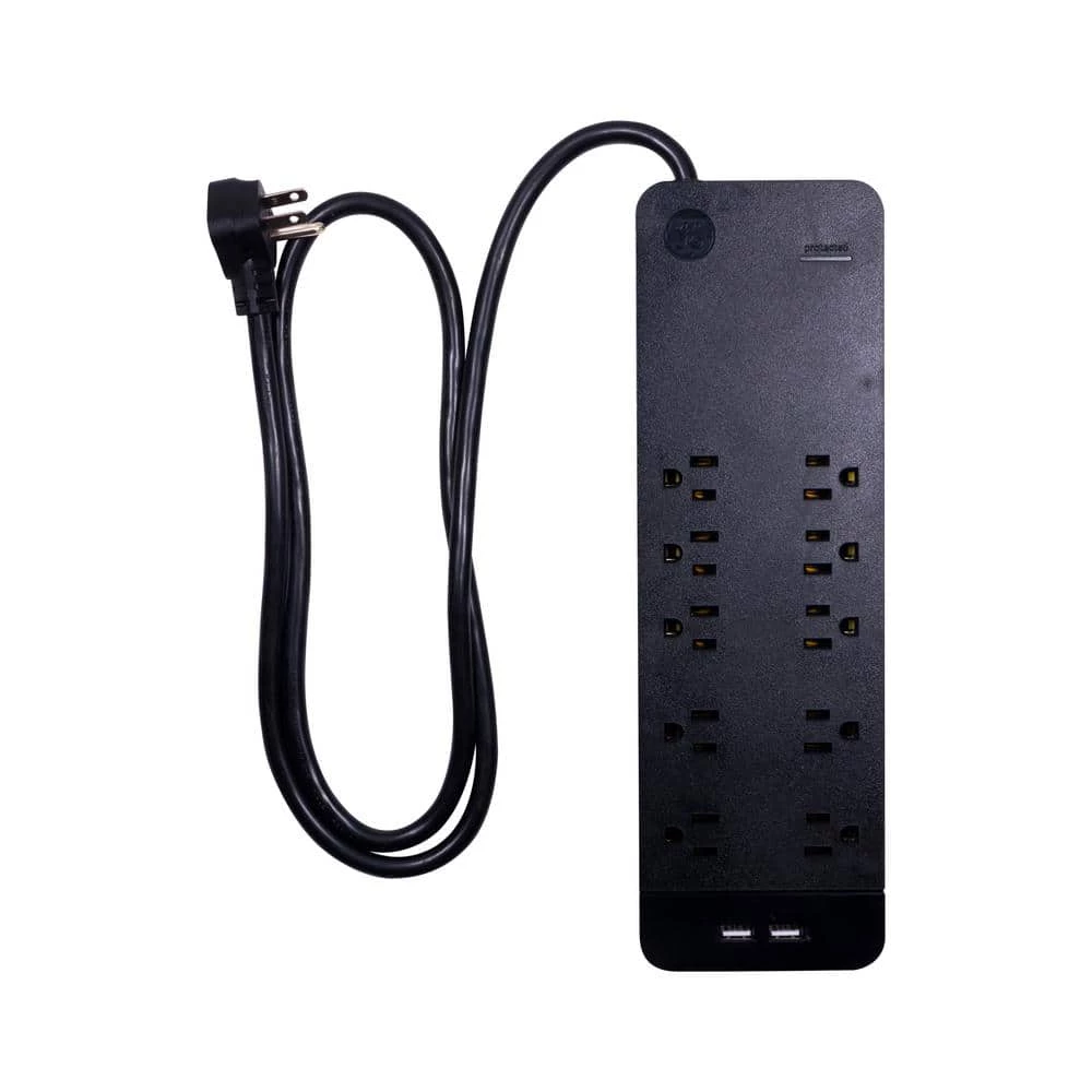 Protect your electronics and charge your portable devices at the same time with the GE Ultra Pro surge protector, 10 outlets + 2 USB charging ports. The premium surge protector Features 10 protected outlets, 2 USB charging ports, and a 4ft power cord. You can rapidly charge your mobile devices while other electronics are connected because of the powerful 2.1 Amp USB ports. The surge protector has a protected indicator light which shows the protection components are working. It also houses an integrated circuit breaker for overload protection. In the event the protection capacity is exceed by a power surge, the indicator light will not be lit and the power will be permanently shut down to the outlets, ensuring the protection of your electronics. For those electronics, such as TVs and stereo equipment, the surge protector Features a power filter which reduces interference to provide a cleaner sound and picture experience.