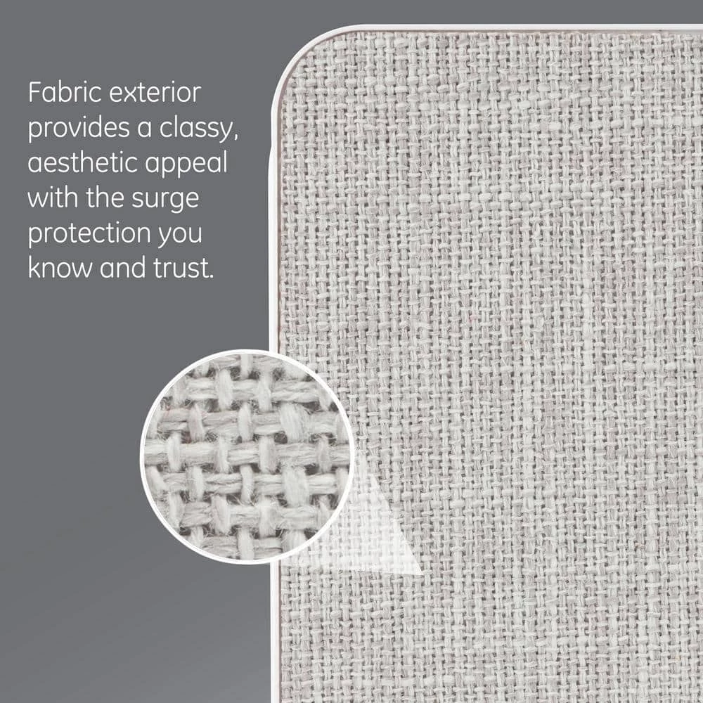 - Surge protector wall tap features 6 grounded outlets and a gray and white designer fabric cover to match any office or home decor