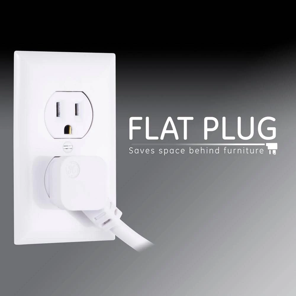 - Extra-long cord with flat plug: 6 ft. extra-long power cord provides optimal reach and utilizes a low profile, flat plug to save space behind TVs, appliances and furniture