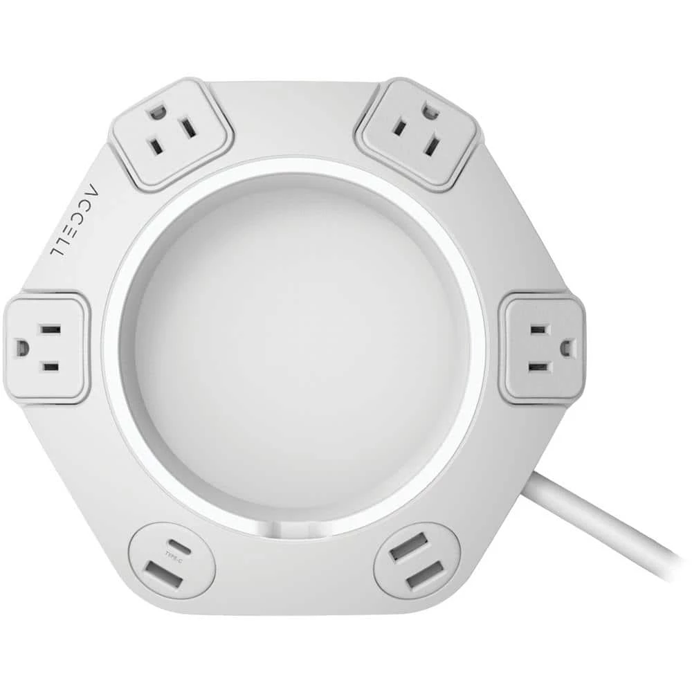The Accell Power Office in White is a compact desktop power station with a dedicated center space to hold your IoT hub. Designed for all your power needs, the Accell Power Office has 4 surge-protected AC outlets that swivel to allow more room for power bricks and USB-C and USB-A charging ports. The 16 ft. cord allows for convenient placement of this power station where you need it most.