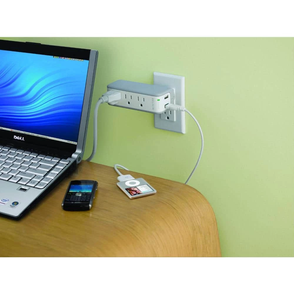 Keep your mobile devices charged and protected when you’re on the road with the Belkin SurgePlus 3-Outlet Mini Surge Protector. Plug this USB travel charger into any wall outlet and power up to 3 AC devices at once without extra cords. The 360° swivel feature makes it easy to fit this SurgePlus in small spaces.