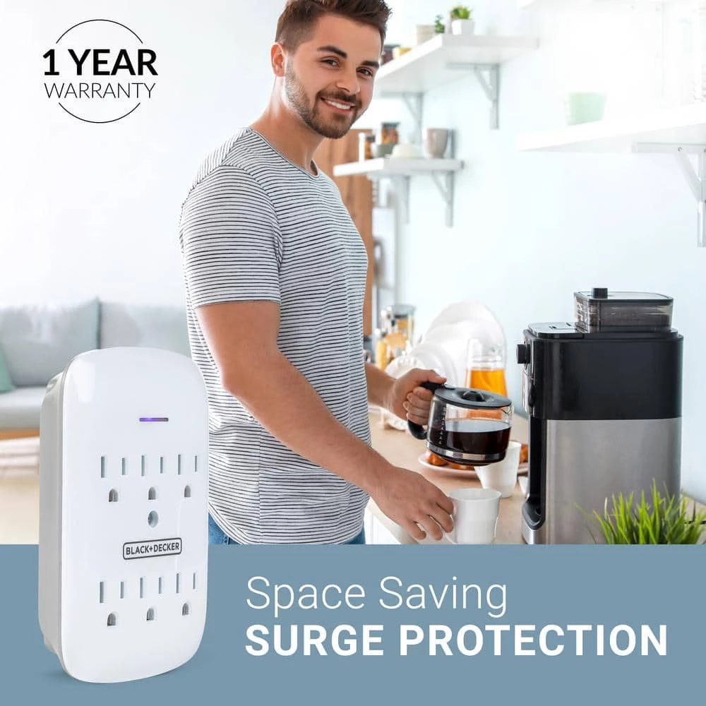 Never run out of wall outlets with the Surge Protector Wall Tap 2-Pack from BLACK+DECKER. Whether you need more outlets in your kitchen, bathroom or office, this outlet has multiple plugs so that you can always have space for everything. It includes 6 grounded outlets ideal for devices with 3-prong plugs and has a slim, compact design that will not take up too much space in any room of your home. These wall taps are the perfect way to add functionality to apartments, dorms and any areas where you do not have enough outlets. Designed with a surge protector with an indicator light, you can always be certain your devices are protected and working with these surge protector wall outlets. Help to keep your cellphones, laptops, Bluetooth devices, small appliances and safer from circuit overload with a 900-Joules surge protection rating. The space-saving design ensures that it is ideal for bulky electronic chargers and power cords, so you always have room while getting ready for work or making dinner. At BLACK+DECKER, we have made it our mission to provide high-quality household products and functional wall surge protectors that suit the needs of our customers. Our ETL certified power plugs will help keep your devices safe and they are perfect for use in bedrooms, bathrooms, kitchens and anywhere you need more outlets. Always have the space for your devices with the BLACK+DECKER Wall Tap 2-Pack. Product Details: 2 Indoor Wall Taps.