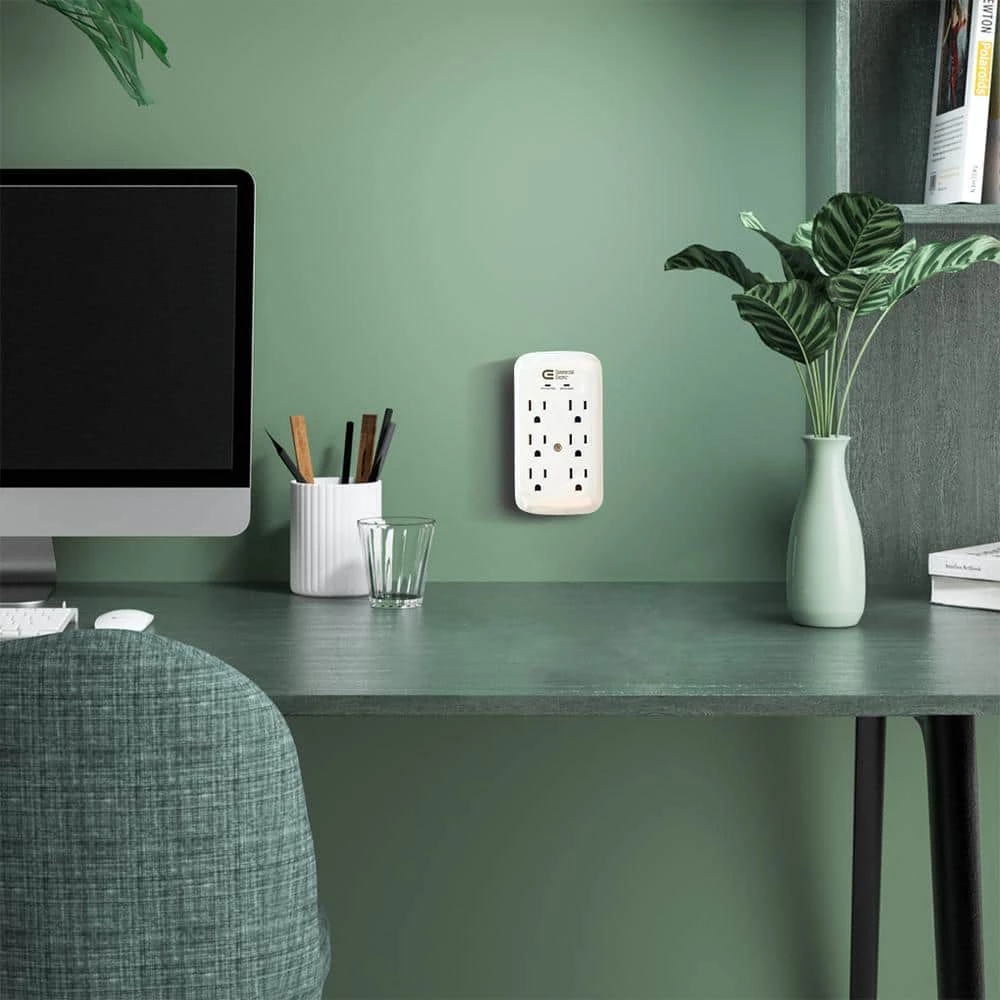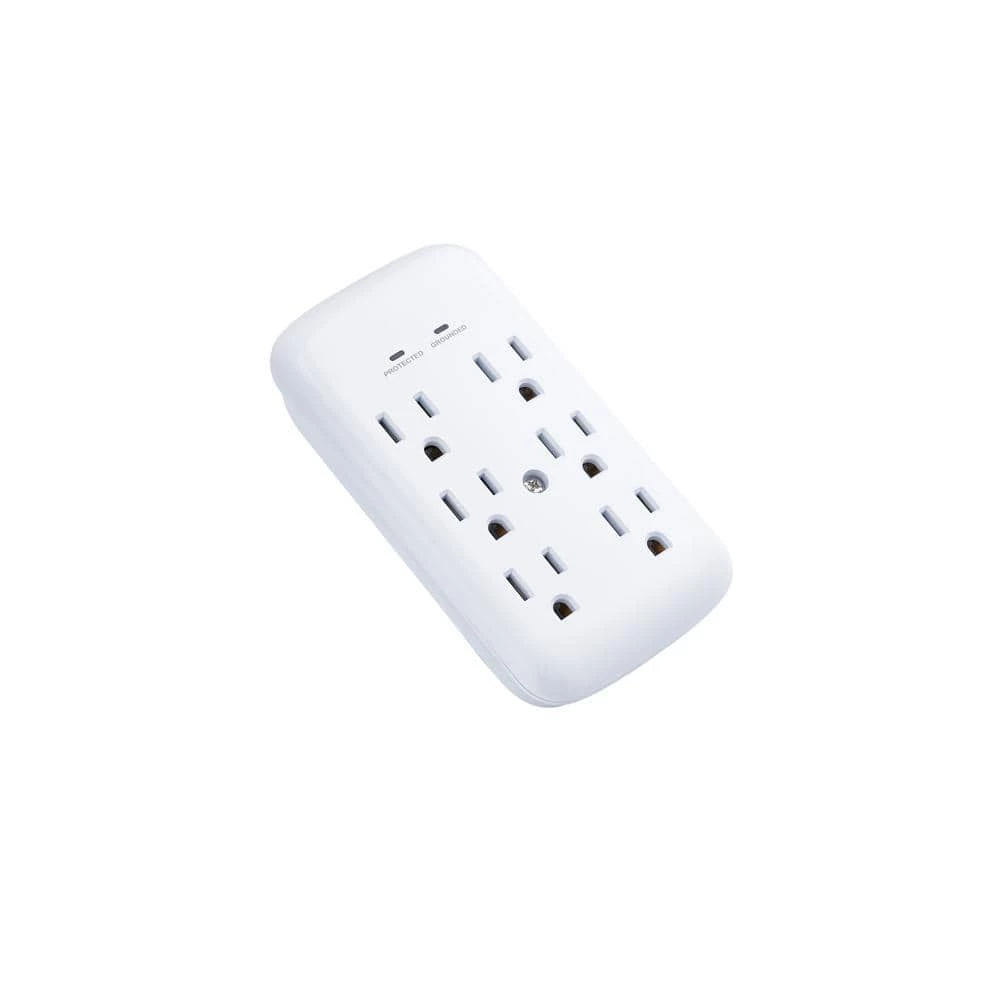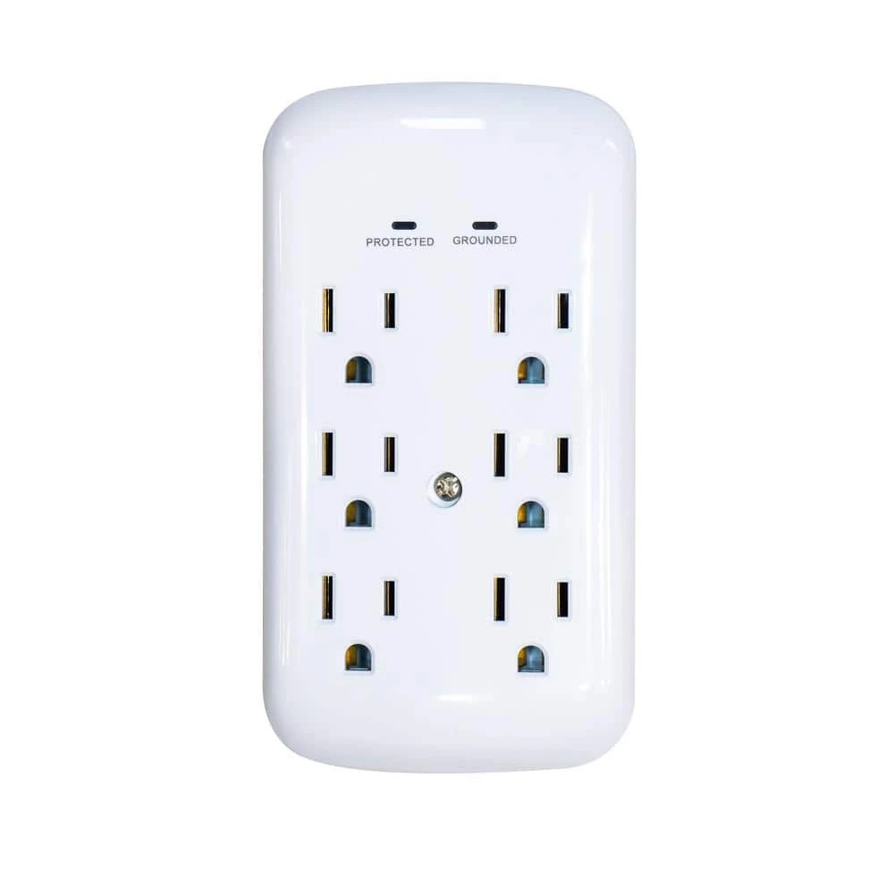 6 AC outlets(15 Amp/125-Volt/1875-Watt) power for cell phones, iPad, laptops, cameras and many devices. With built-in surge protector (1225 Joules), it can ensure your precious devices are under protection. 1 protected indicator light and 1 grounded indicator light. With design of the mount screw. Indoor use only.