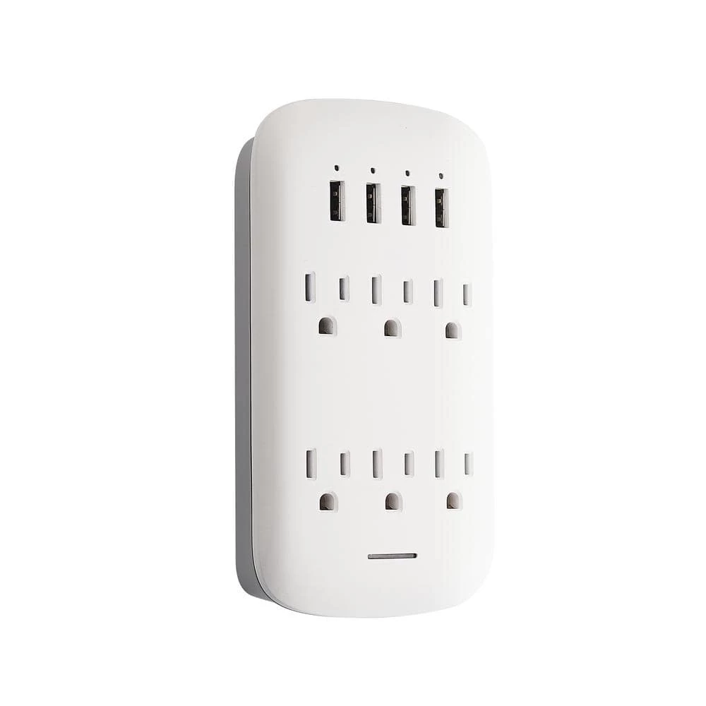 6 Surge outlets with 4 USB. Provides protection from powersurges and spikes. Phone cradle on top to rest your phone while it charges.