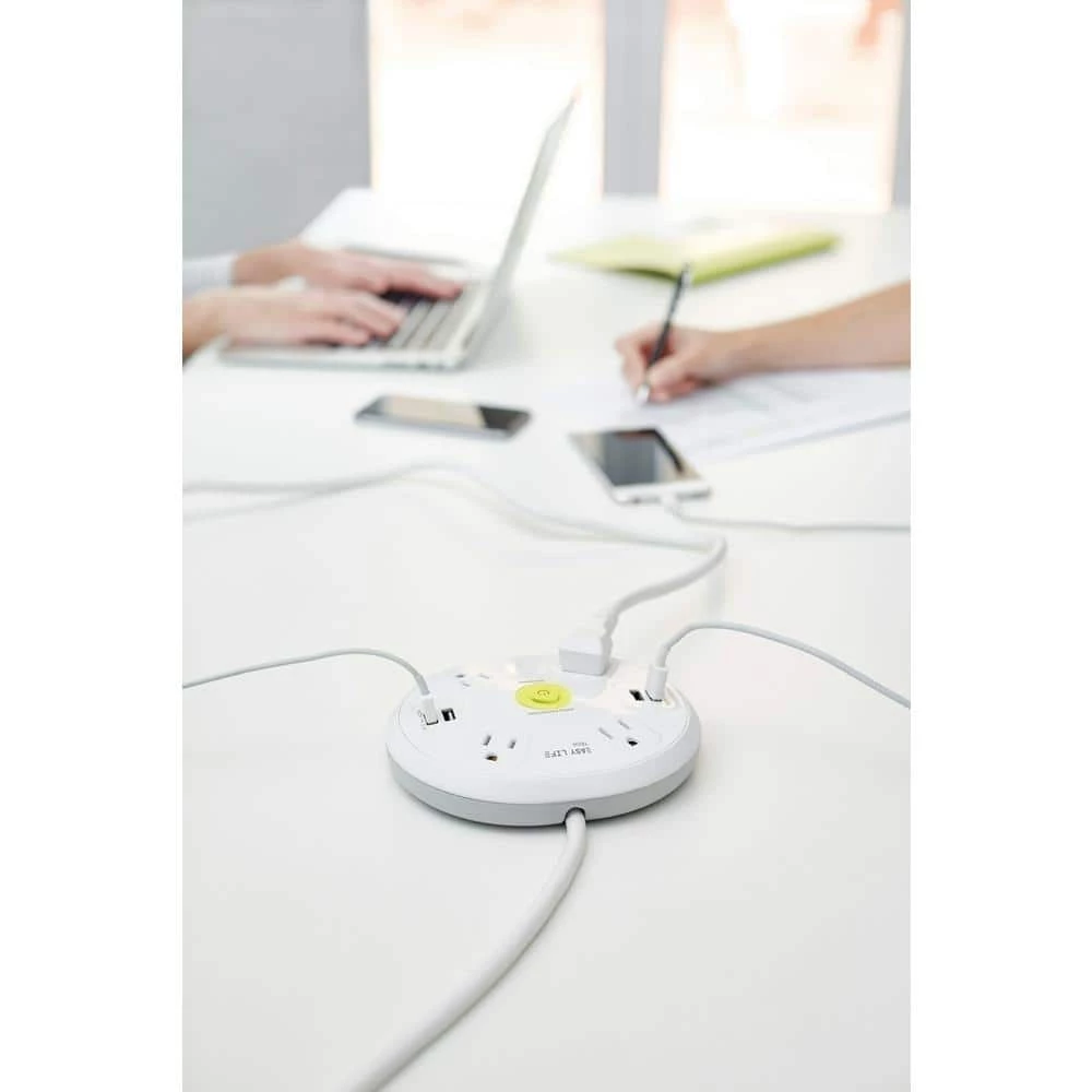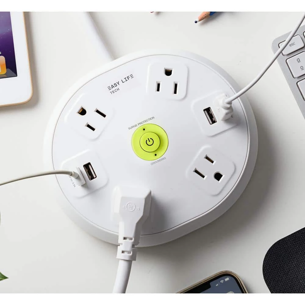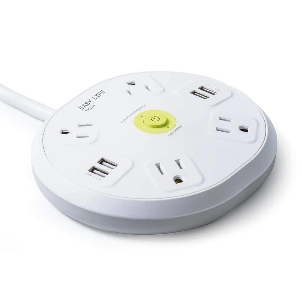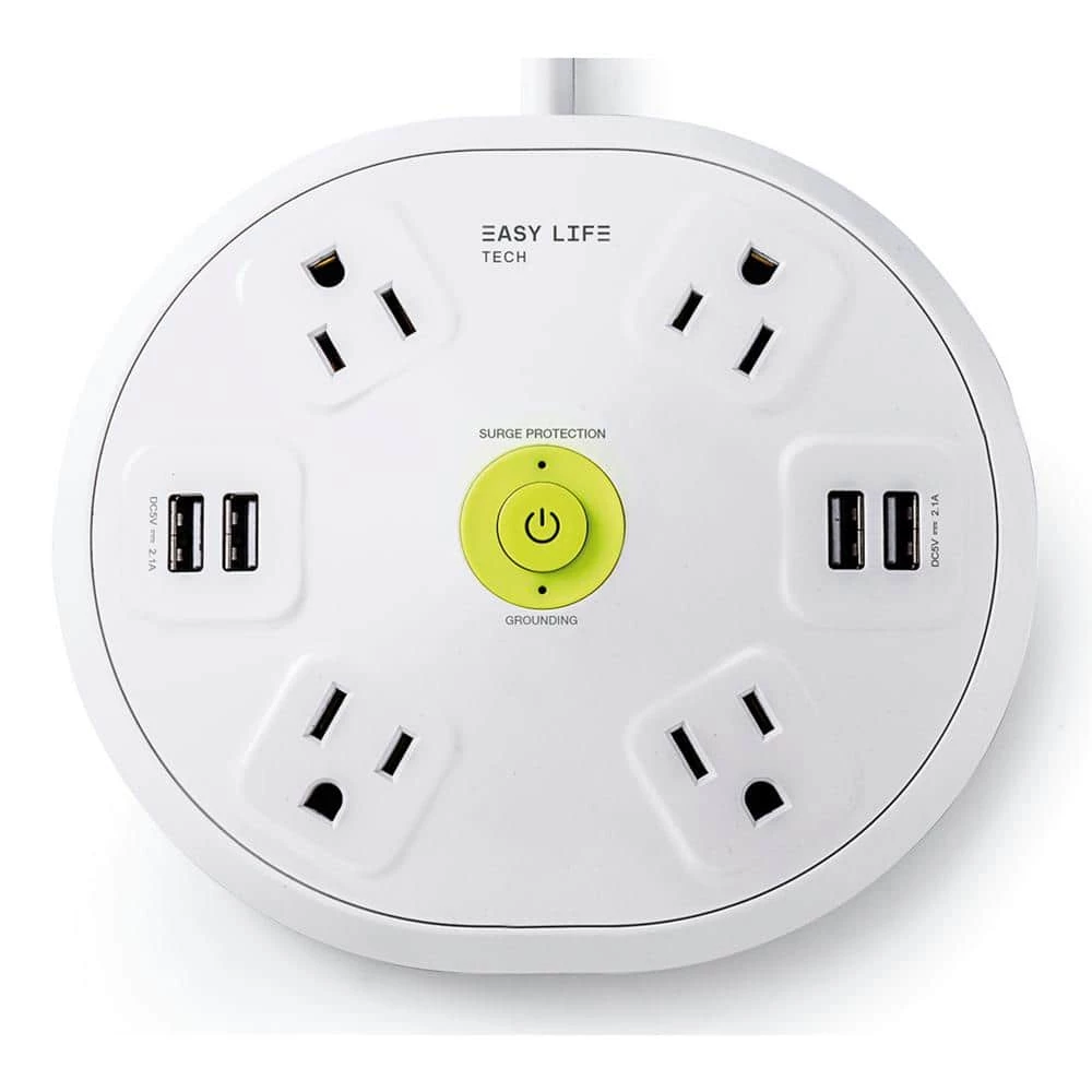 EasyLife Tech 6 ft. 4-Outlet, 4-USB, Round Hub Surge Protector – White
