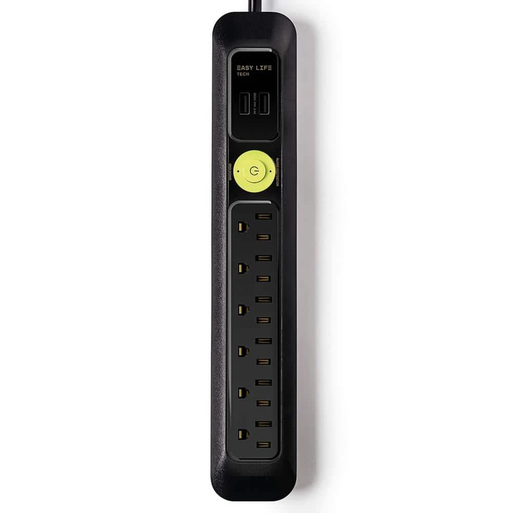 EasyLife Tech 6 ft. 6-Outlet, 2-USB, Power Strip Surge Protector – Black