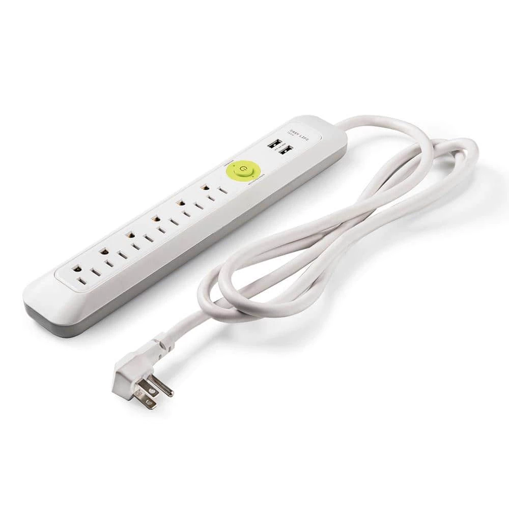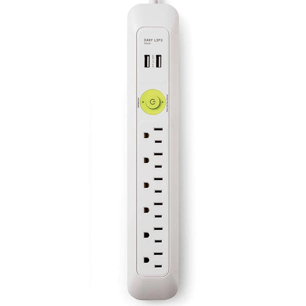 EasyLife Tech power strip with 6 outlets, 2 USB, and surge protection to ensure connection safety. Reach any outlet with the 6 ft. heavy-duty cord and built-in flat plug. Designed for home and office use. On/Off switch and 2 keyhole slots for wall mounting.