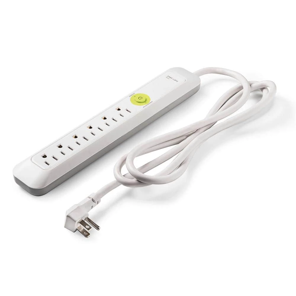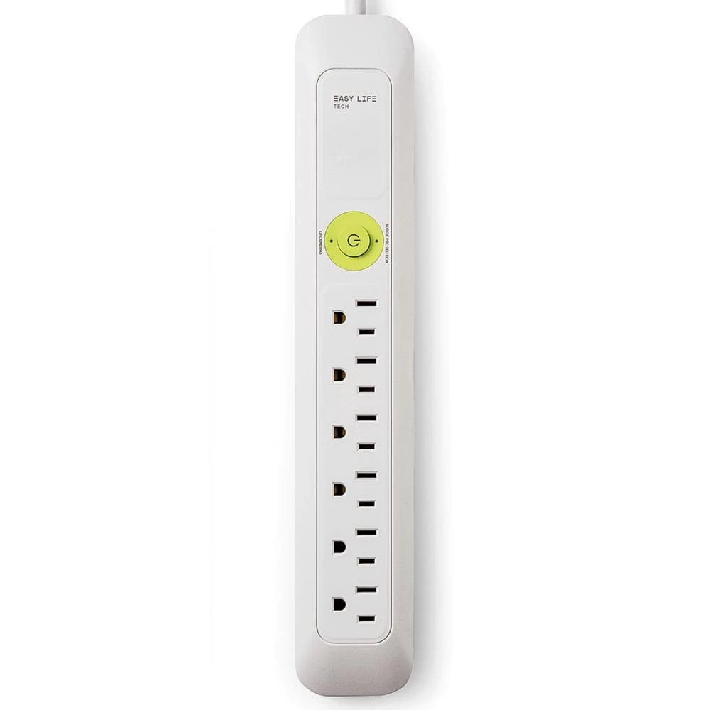 Easylife Tech power strip with 6 outlets and surge protection to ensure connection safety. Reach any outlet with the 6 ft heavy duty cord and built in flat plug. Designed for home and office use. On/Off switch and 2 keyhole slots for wall mounting.
