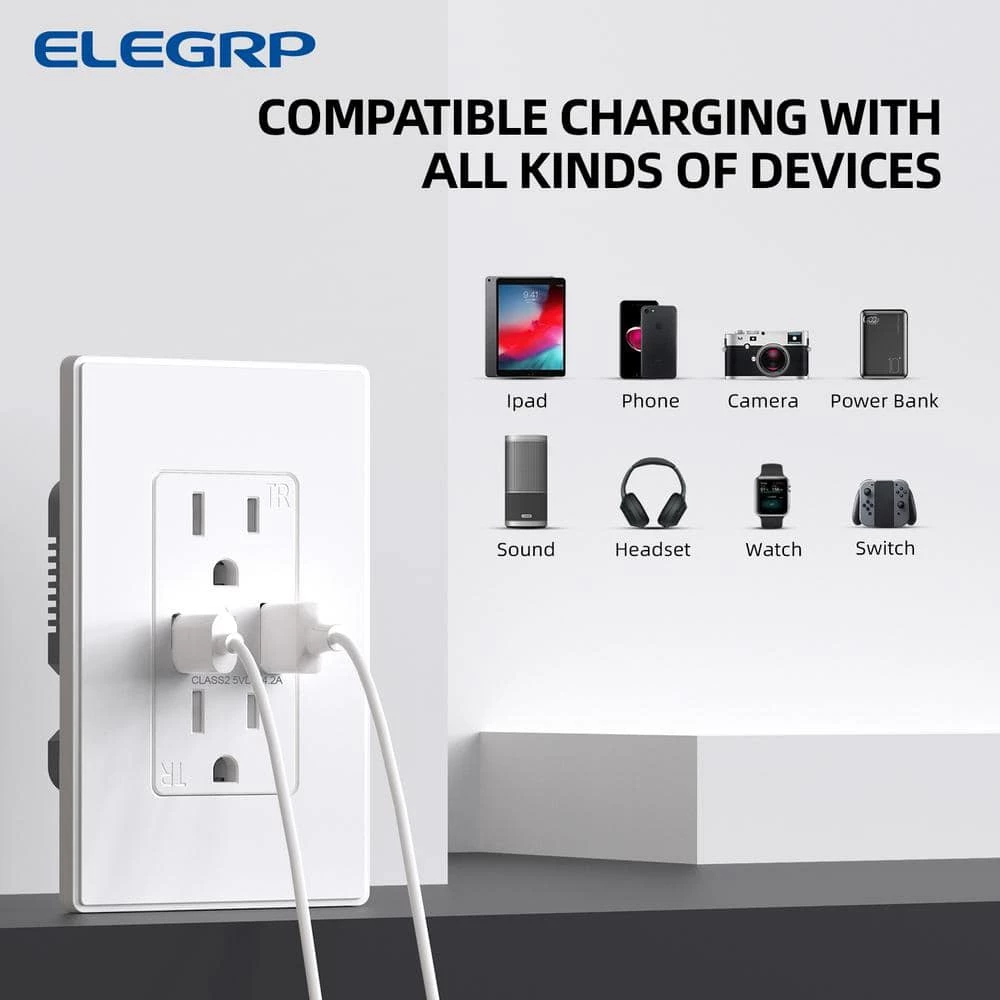 - High-Speed Charging Tech – in-wall duplex receptacles with two USB charging ports with a total output of 4.2 Amp 5V DC. When use separately, the maximum output of the Type C port is 3.0 Amp 5V DC, and the Type A port is 2.4 Amp 5V DC.
