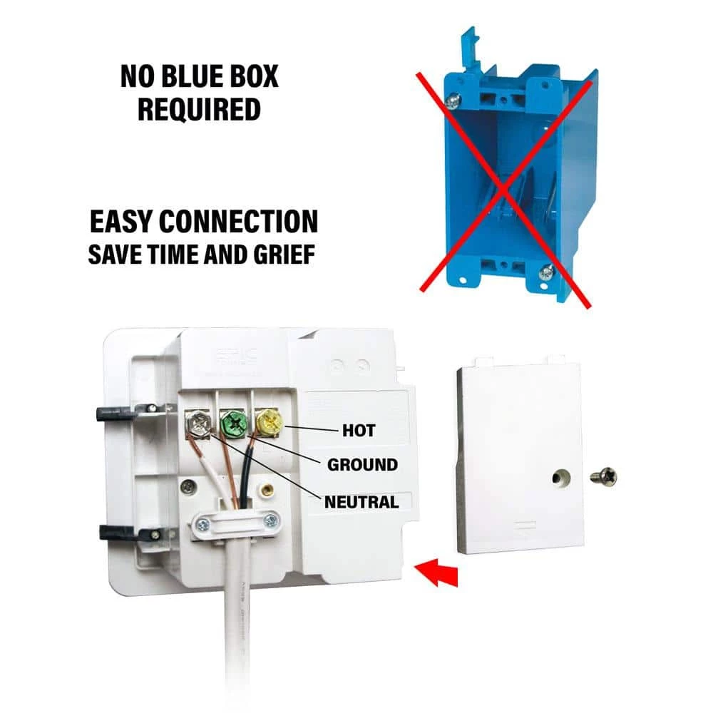 - Includes lower recessed outlet box and extension cable to link to wall AC socket, no electrician required