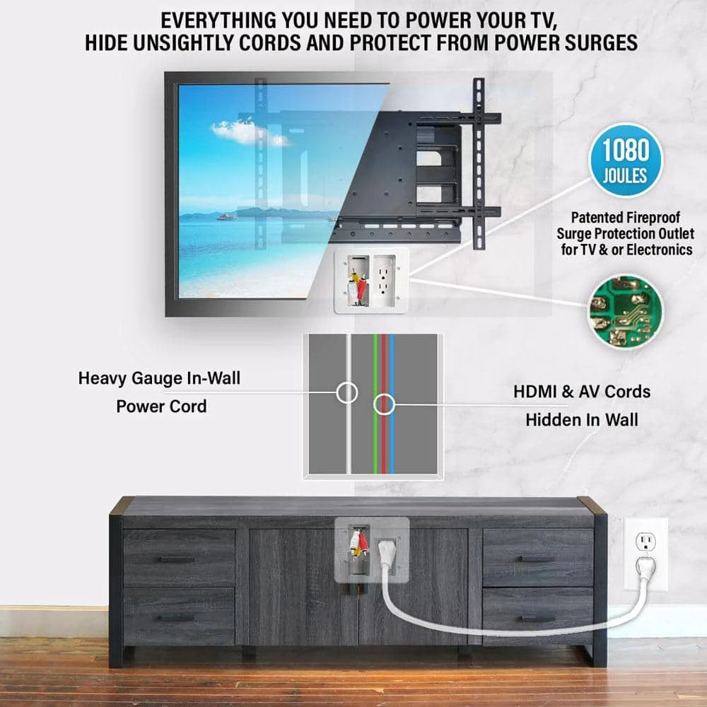 - Includes everything needed to create a concealed connected and protected flat panel TV installation