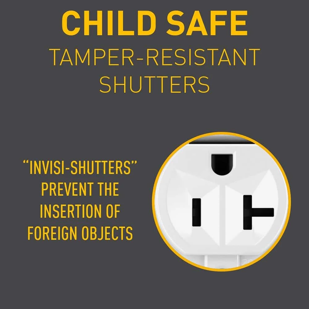 - Patented internal shutter system lets plugs in, but keeps keys and other objects out with automatic shutters that block access