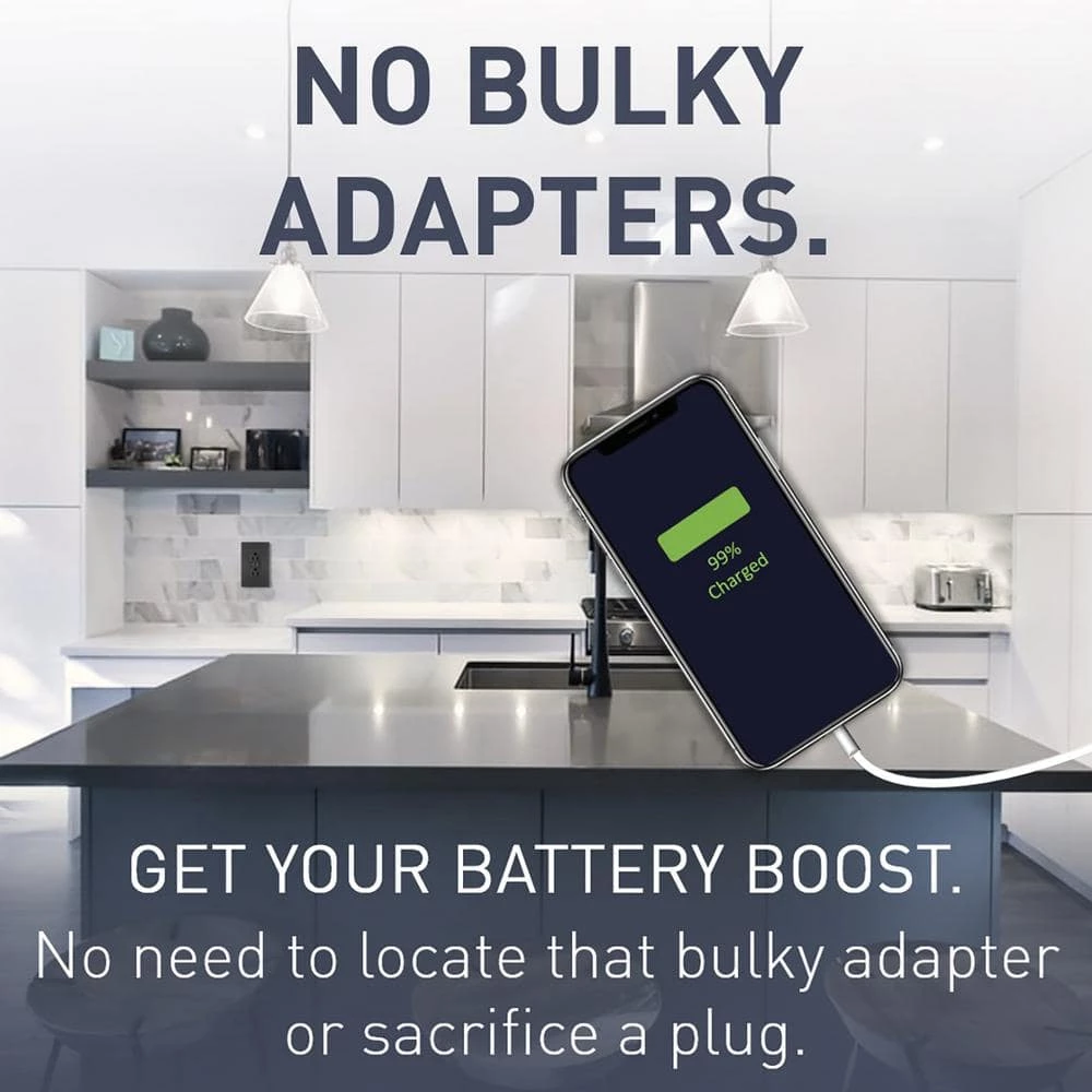 The radiant collection is a step up from the standard with simple, classic options in wiring devices, home automation controls and screwless wall plates that complement today’s homes. The radiant USB charging solutions let you charge more of your devices without the need for bulky AC adapters. Standard power meets modern convenience with this clever integration of 2 USB charging outlets, which provide 3.1 Amp of combined charging power right alongside standard outlets. The metallic graphite finish is designed to complement the beauty of black stainless-steel appliances and satin or matte black lighting fixtures, faucets, and hardware.