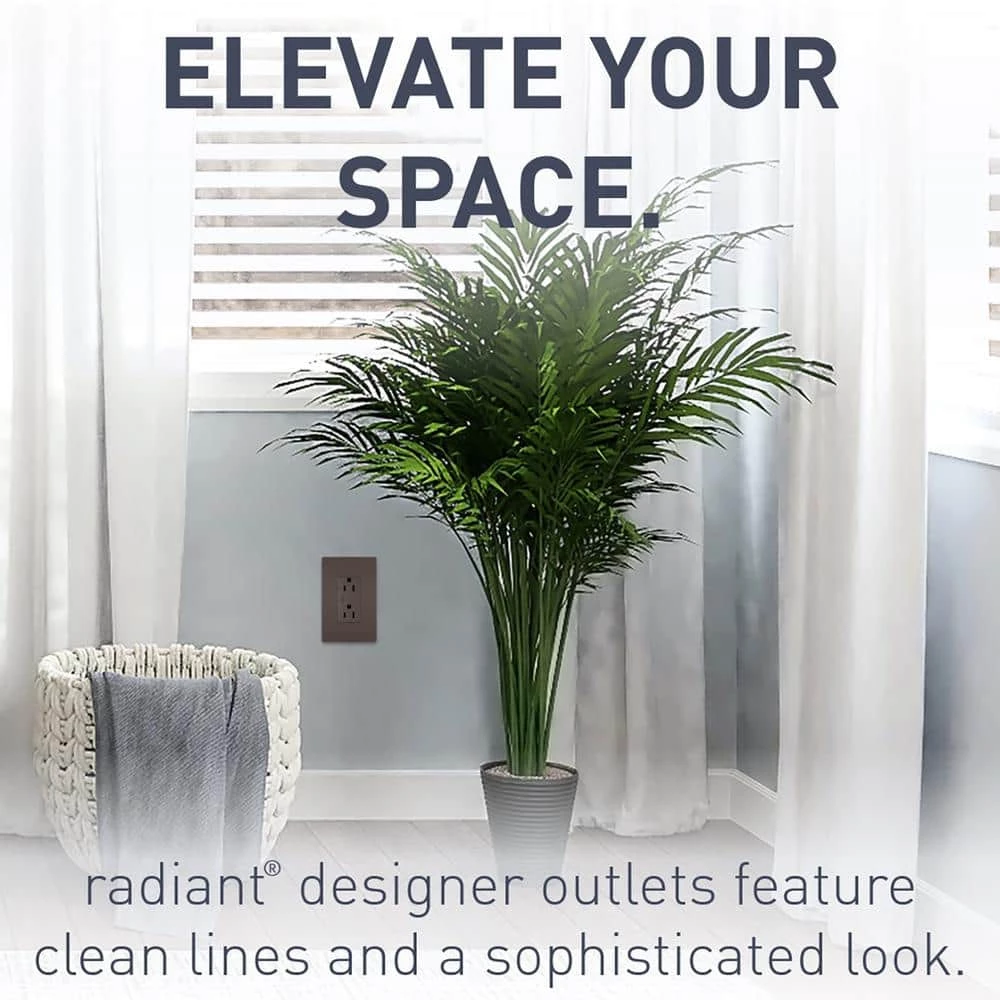 The radiant collection is a step up from the standard with simple, classic options in wiring devices, home automation controls and screwless wall plates that complement today’s homes. Aesthetically improved yet reliable as ever, these tamper resistant receptacles are equipped with a patented shutter system-now with black invisi-shutters that disappear for an invisible effect preferred by end users-to help prevent improper insertion of foreign objects. These UL Listed receptacles comply with 2014 (NEC) article 406.12, and as part of the radiant collection, now offer a better fit, form and finish. The metallic dark bronze finish is designed to complement the beauty of dark bronze lighting fixtures, faucets, and hardware.