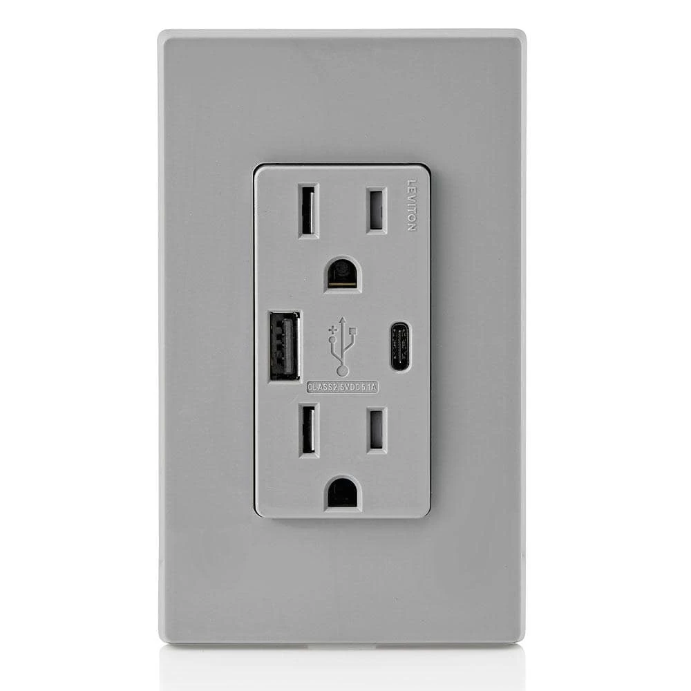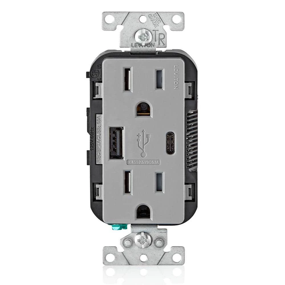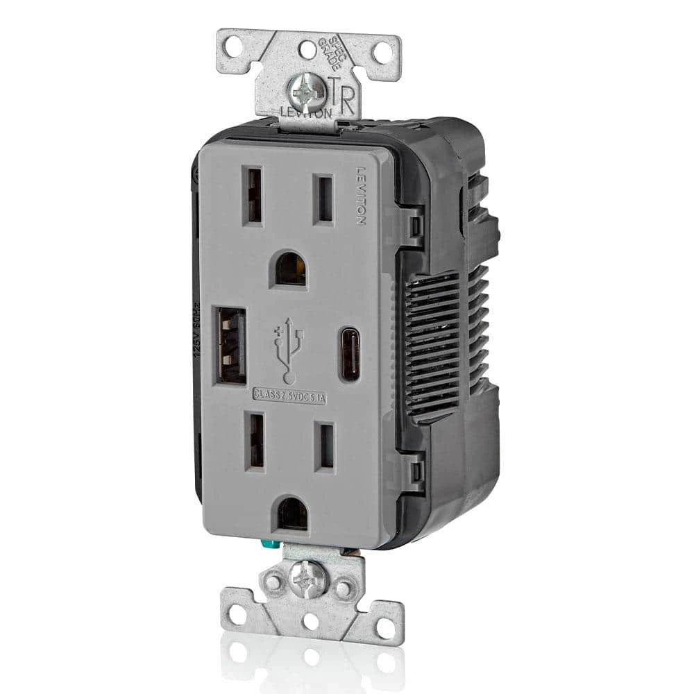 The Type A and Type-C USB Charger/Tamper Resistant Receptacle offers superior charging power for smartphones, tablets, laptops, monitors, printers and more. 2 high powered vertical USB Ports, 1 Type A and 1 Type-C, deliver a combined total of 5.1 Amp charging current and 25-Watt of power. Smart chip technology recognizes and optimizes the charging requirements of individual devices and the Type-C Port enables the cables to be inserted easily in either direction. The Type A and Type-C USB Charger/Tamper Resistant Receptacle is a powerful solution to help keep your devices charged with ease and style.