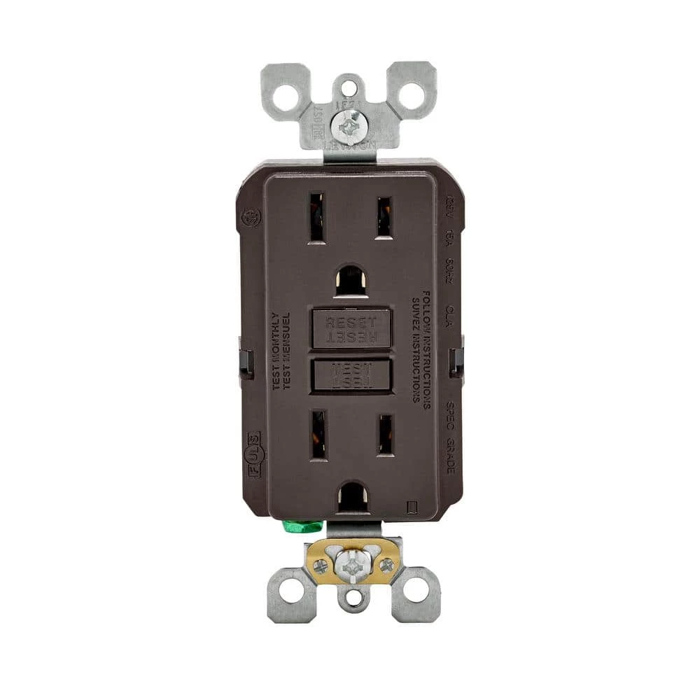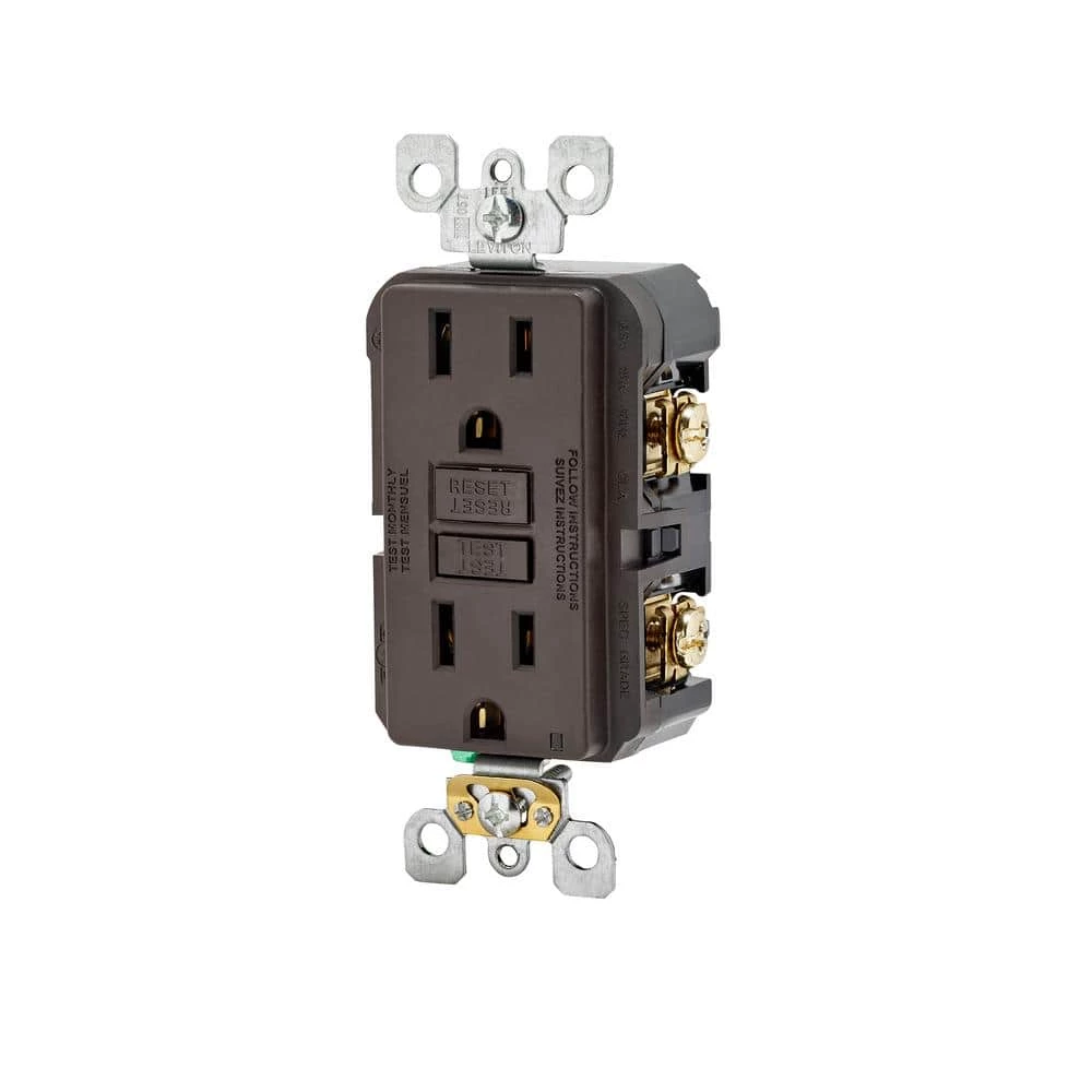 Leviton 15 Amp Self-Test SmartlockPro Slim Duplex GFCI Outlet, Brown