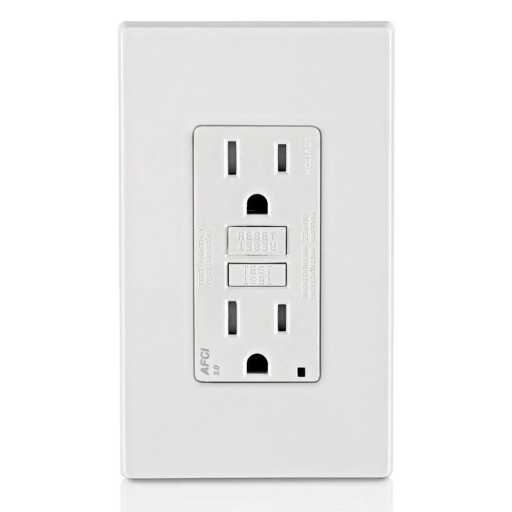 The SmartlockPro Outlet Branch Circuit (OBC) AFCI Receptacle offers advanced technology to help protect against electrical fires resulting from arc-faults. Designed to detect a wide range of potentially hazardous arc-faults resulting from damage in branch circuit wiring as well as extensions to branches such as appliances and cord sets, the OBC AFCI responds by interrupting power. This helps reduce the likelihood of the home’s electrical system being an ignition source of a fire. Often unseen, arc-faults can occur anywhere in the home’s electrical system including within walls, at loose electrical connections or within electrical cords accidently damaged by impinging furniture. AFCI’s are now required by the National Electrical Code in many areas of the home.