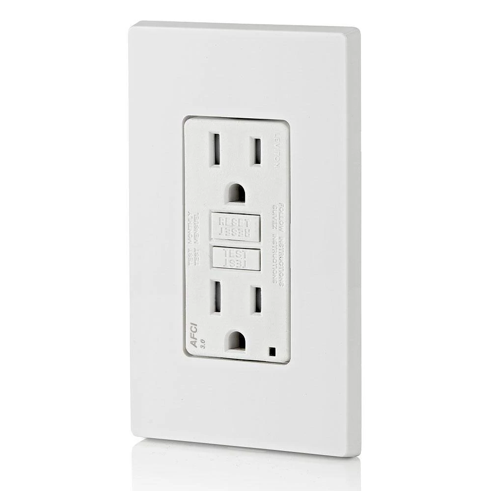 The SmartlockPro Outlet Branch Circuit (OBC) AFCI Receptacle offers advanced technology to help protect against electrical fires resulting from arc-faults. Designed to detect a wide range of potentially hazardous arc-faults resulting from damage in branch circuit wiring as well as extensions to branches such as appliances and cord sets, the OBC AFCI responds by interrupting power. This helps reduce the likelihood of the home’s electrical system being an ignition source of a fire. Often unseen, arc-faults can occur anywhere in the home’s electrical system including within walls, at loose electrical connections or within electrical cords accidently damaged by impinging furniture. AFCI’s are now required by the National Electrical Code in many areas of the home.