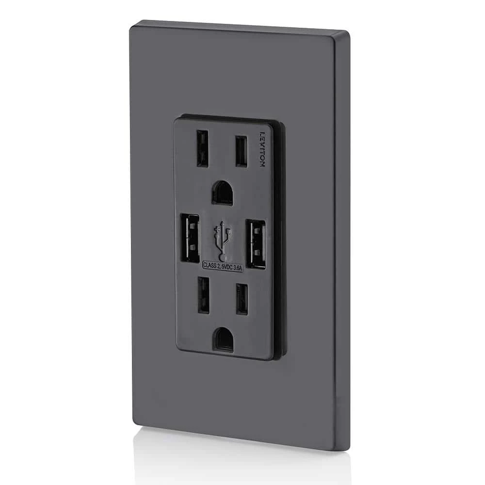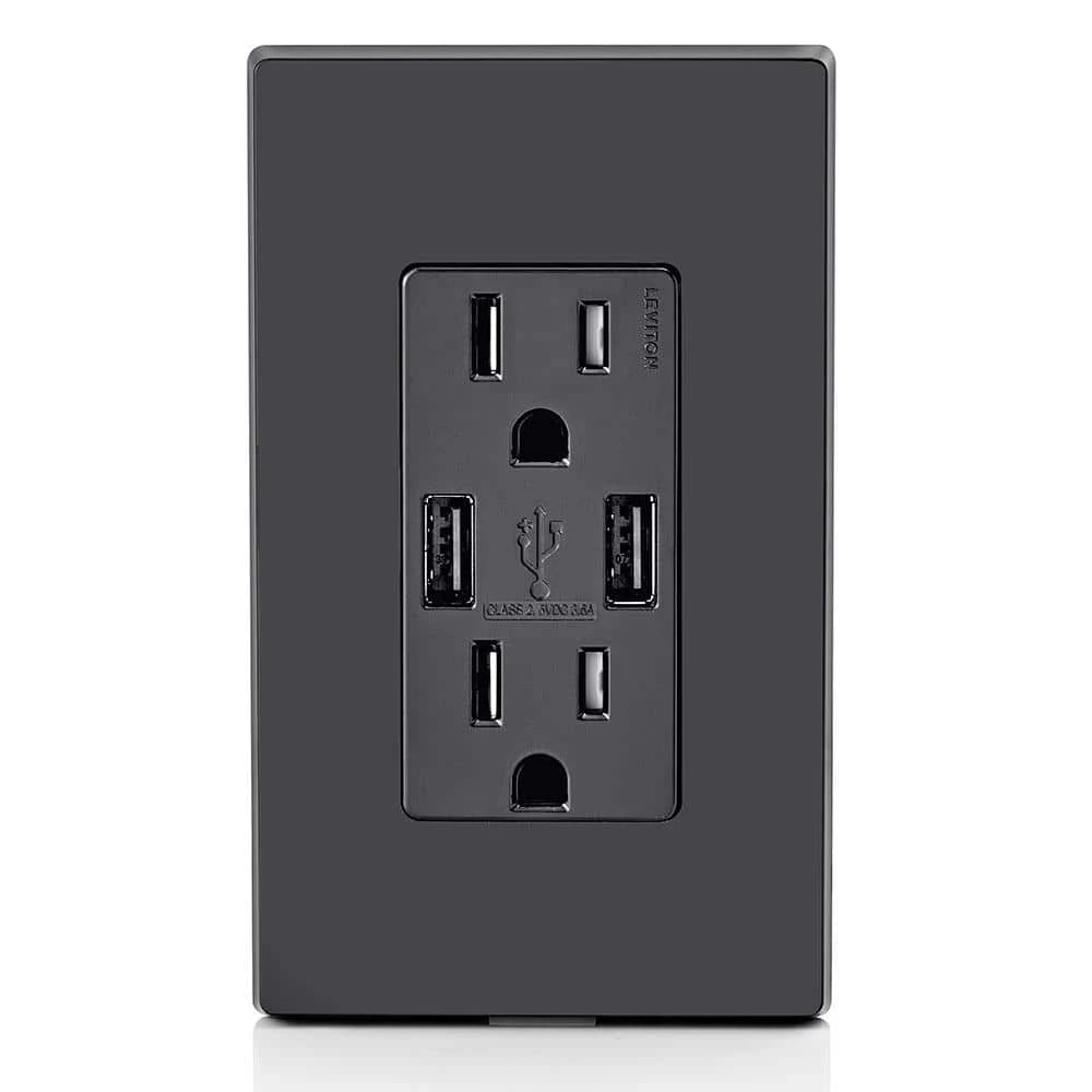 Our USB Charger Devices feature a smart chip that recognizes and optimizes the charging power of your electronic devices for fast and efficient charging. Strategically placed vertical USB ports in all models provide generous room to insert and maneuver charging cords and add to the contemporary and aesthetically appealing design. Plus, adapter-free charging eliminates unsightly clutter contributing to a neat appearance on countertops, desktops or wherever you choose to charge. Engineered for compatibility with the latest technology, Leviton USB charger devices are designed to charge tablets, smart and mobile phones, gaming devices, e-readers, digital cameras and a host of other electronic devices.