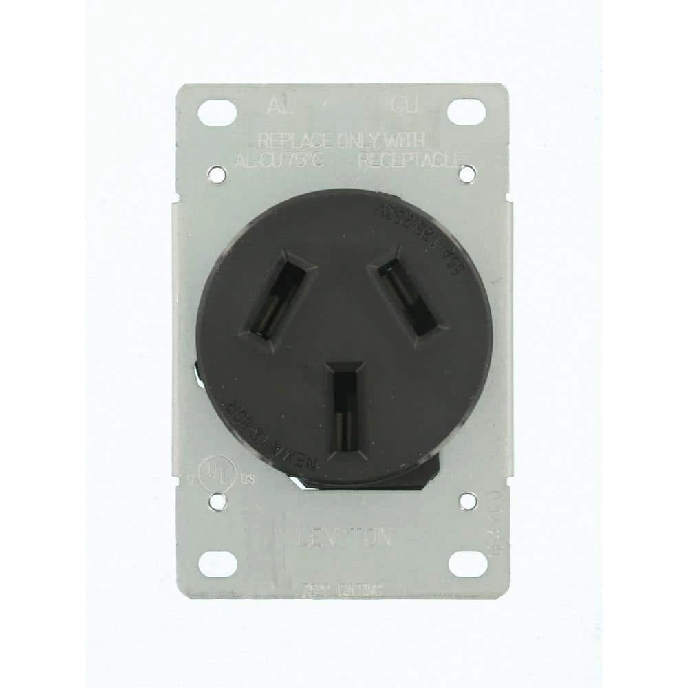 Built of durable thermoplastic, Leviton Power Receptacles come equipped with heavy-gauge, double-wire copper alloy contacts. To ensure correct and speedy wiring, terminals have ID markings. Flush mount receptacles fit Leviton’s wide range of 2.15 in. dia. wallplates and mounting hardware is included.