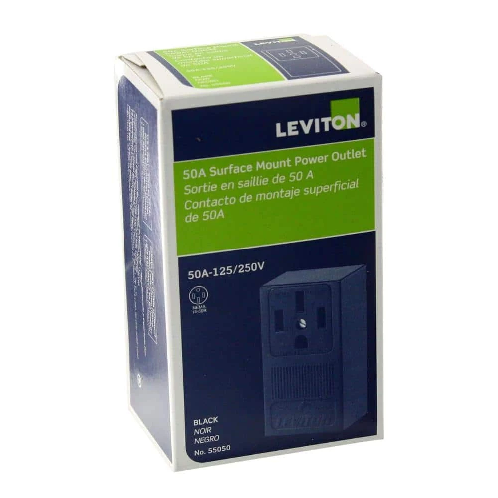 Built of durable thermoplastic, Leviton Power Receptacles – come equipped with heavy-gauge, double-wire copper alloy contacts. To ensure correct and speedy wiring, terminals have ID markings. The self-grounding Leviton 50 Amp Single Surface Mounted Outlet is designed for indoor use and is made of thermoplastic for added durability.