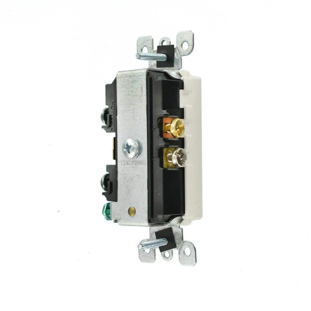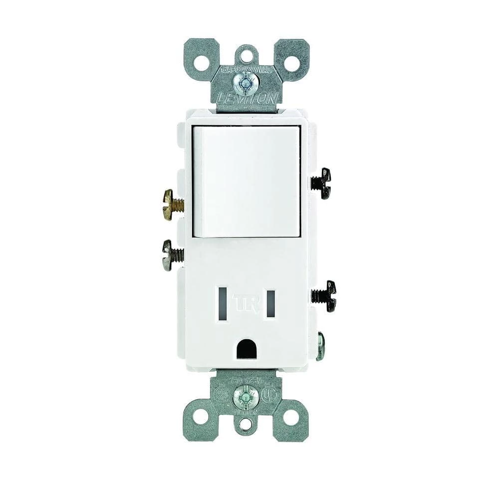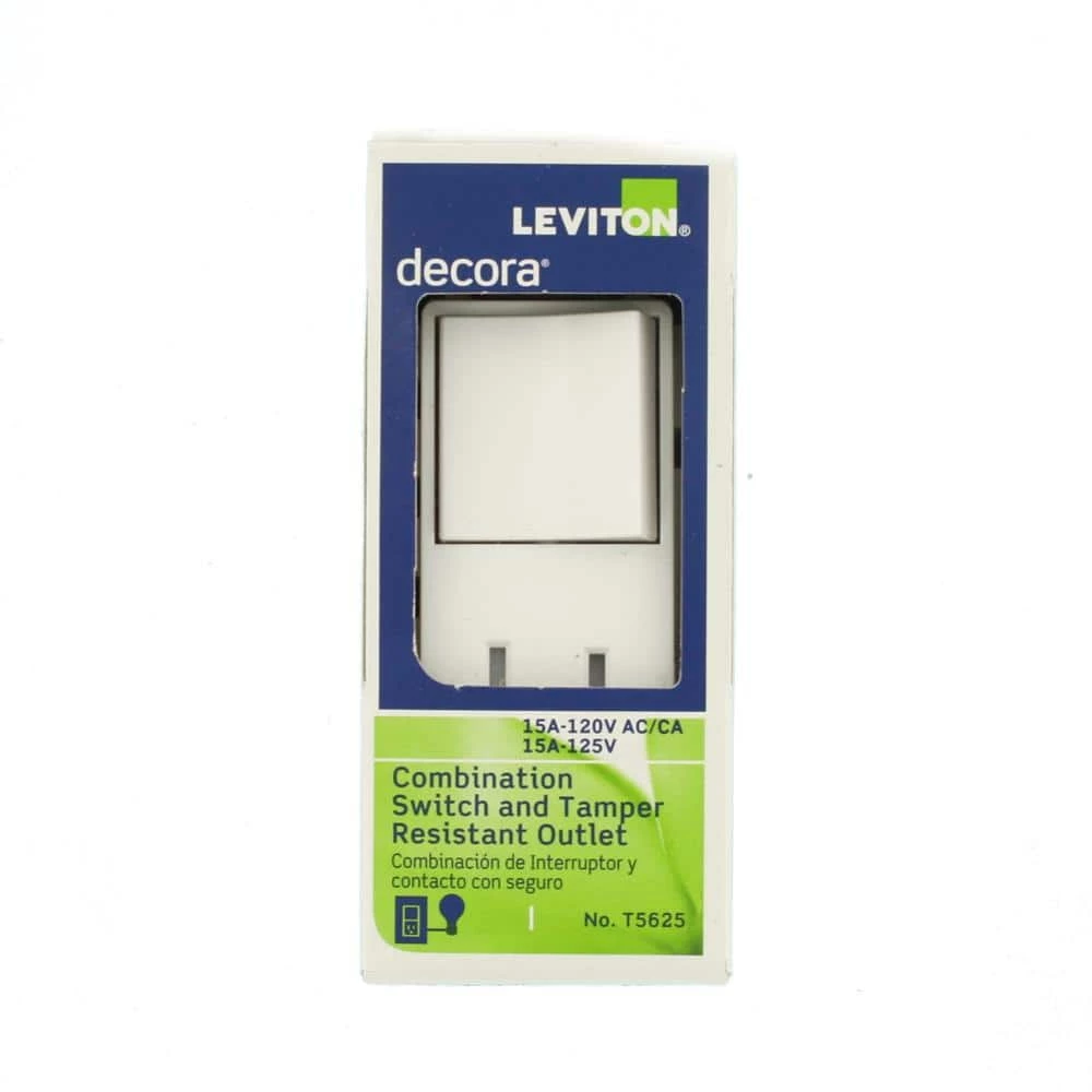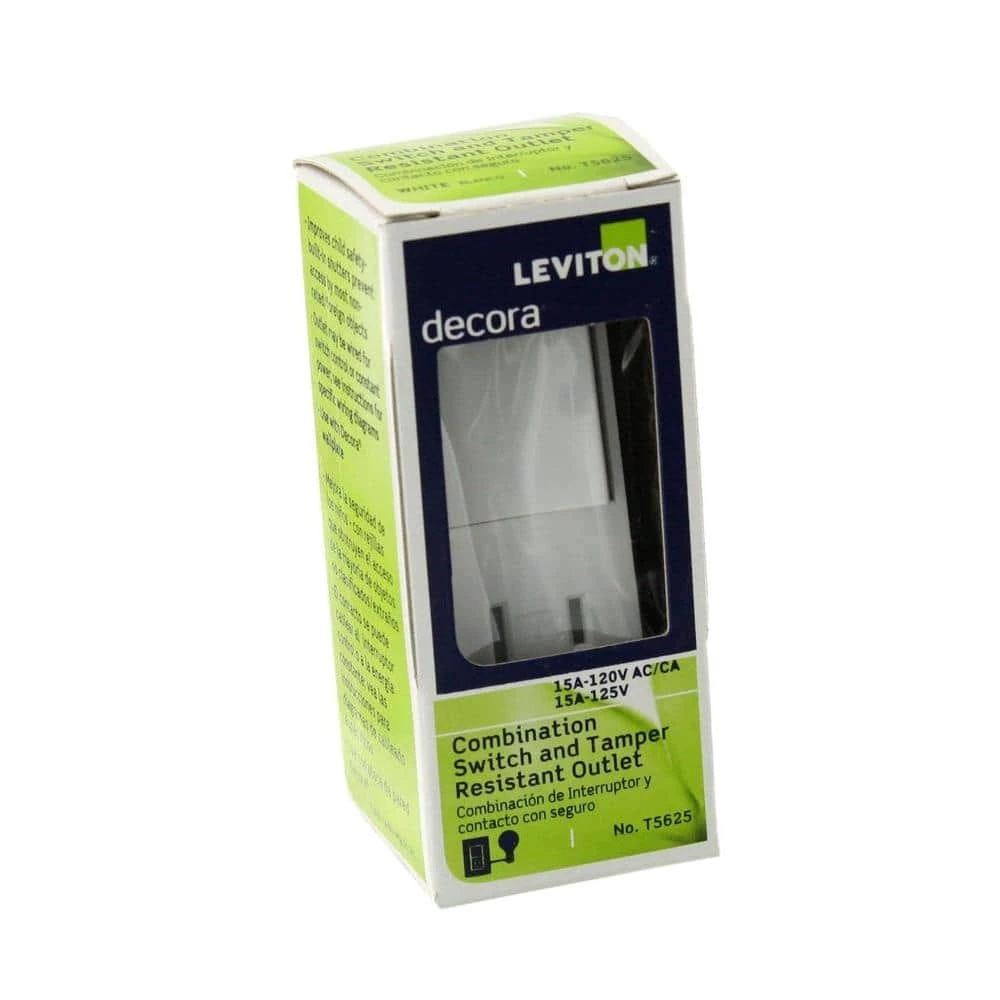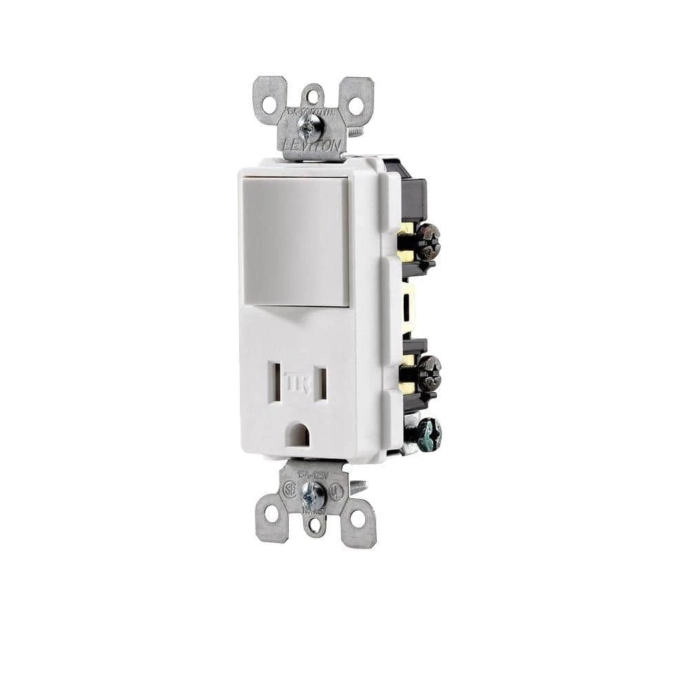The Leviton Decora 15 Amp Tamper-Resistant Combination Switch and Outlet enhances your child’s safety by helping to block the insertion of small objects. Designed to provide either switch control or constant power. This versatile device has a space-saving design that fits multiple devices in a single wall box.