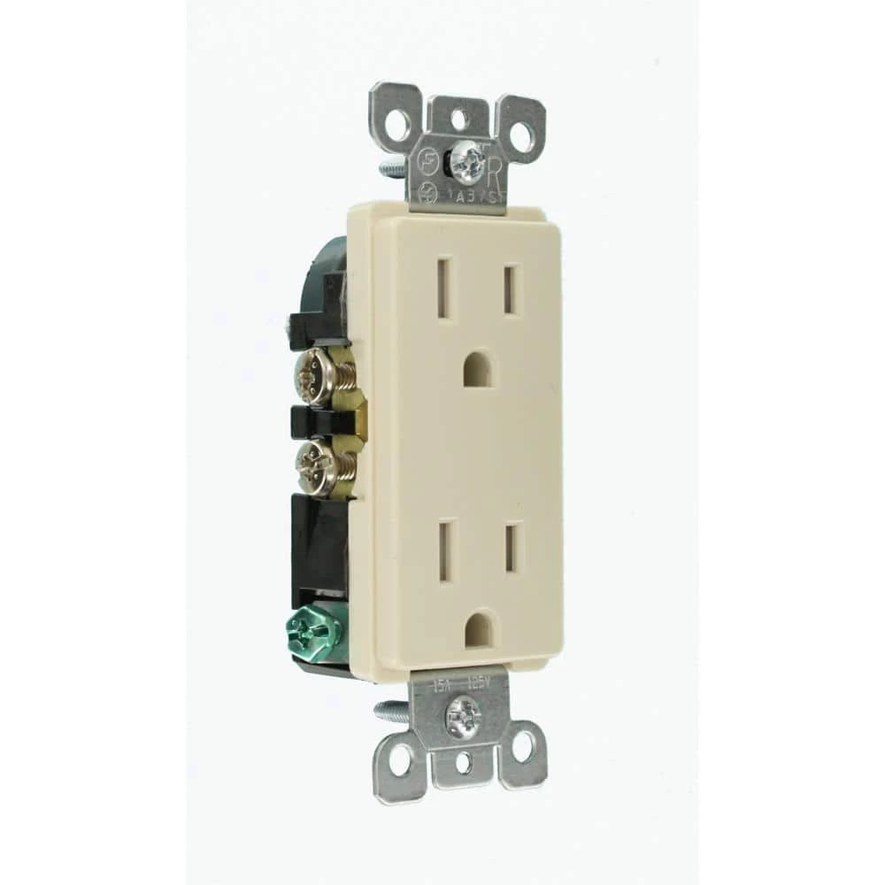 Decorative tamper resistant grounded duplex receptacle meets the 2008 NEC requirement. Shutter mechanism inside the receptacle blocks access to the contacts unless a 2 prong plug is inserted, helping ensure hair pins, keys, etc., will be locked out. Quick wire push in or side wired terminals. Heavy duty construction offers long, trouble free service life.