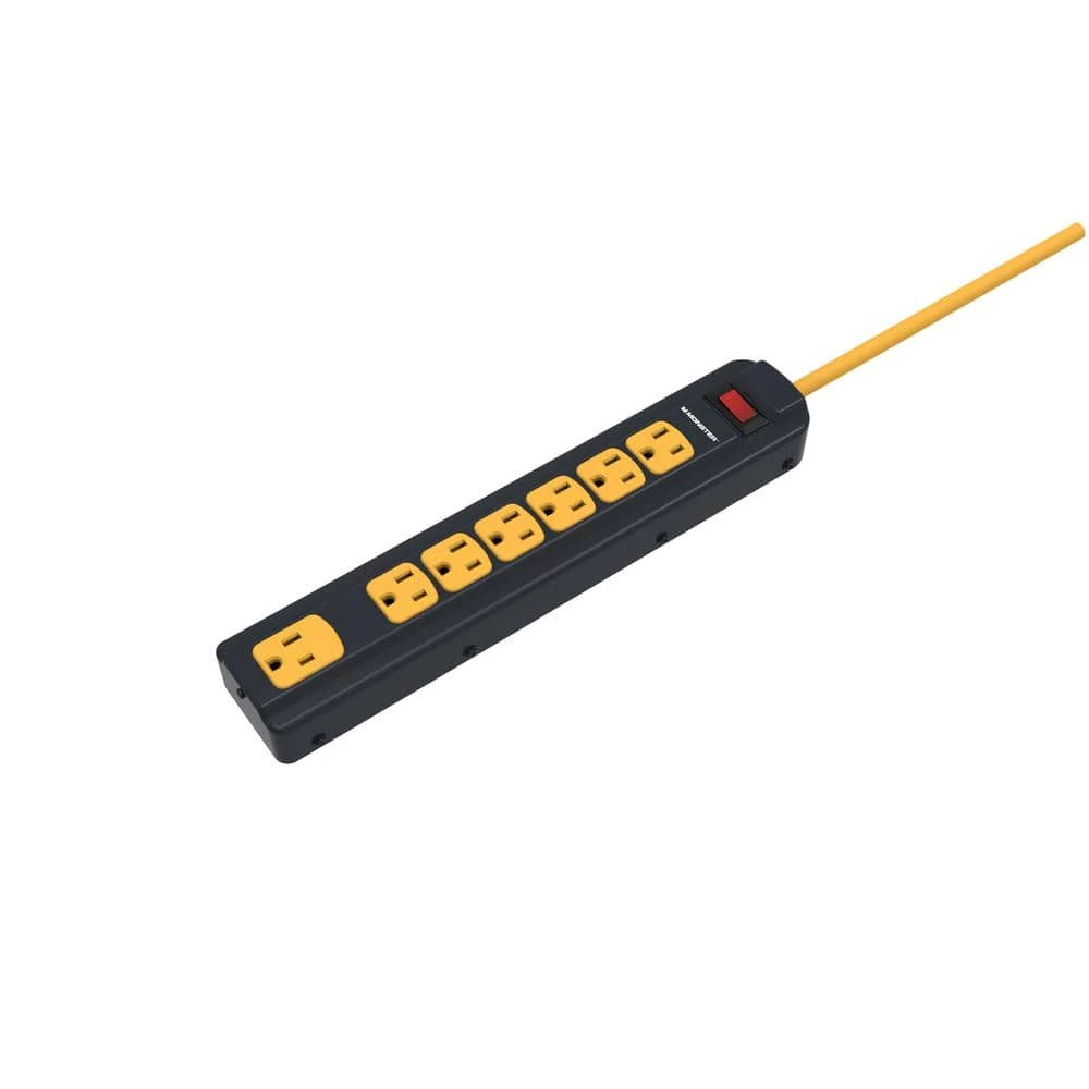 - Convenient features: popular for workshops, tough metal case, 1 wide-spaced outlets, angled flat plug, red protection led indicator
