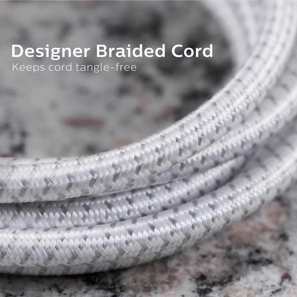 - Long designer cord power your electronics and devices with the stylish, tangle-free, 10 ft. braided extra-long power cord