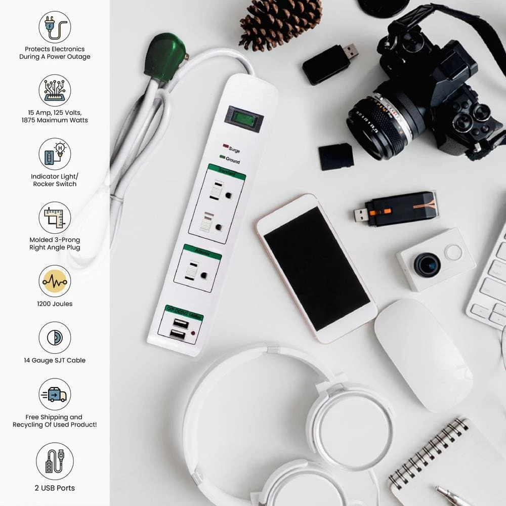 Whoever said good things come in small packages must have been talking about the 3-Outlet Surge Protector w/USB by GoGreen Power. Designed for peak performance for users on the go, the 3-Outlet Surge Protector w/USB by GoGreen protects your electronics while giving you that much-needed place to park your phone, tablet, or other USB devices for charging. ? ? The GoGreen 3-Outlet Surge Protector w/USB sports a 15 Amp, 1875-Watt circuit breaker providing an incredible 1,200 joules of simultaneous protection for two standard outlets, one large adapter, and two USB ports at once. The compact design includes an indicator light verifying you have active protection at all times, and industry standard EMI/RFI shielding means you’ll never have to wonder about performance or safety. ? With a right-angle plug and a 3 ft. cord, the GoGreen 3-Outlet Surge Protector w/USB puts power and protection right at your fingertips. And with the environmentally-friendly design of all GoGreen products, you can focus on the task at hand knowing your computers, appliances, and other electronic devices are safe and sound. We have all thrown our items in the trash, even though it always says on the package dispose of properly. Everyone wants to recycle, but not change their lifestyle. We want to make it easy for you to recycle comfortably from your home or office. Its Free. Enter our Power By GoGreen code at www.iRecycled.com