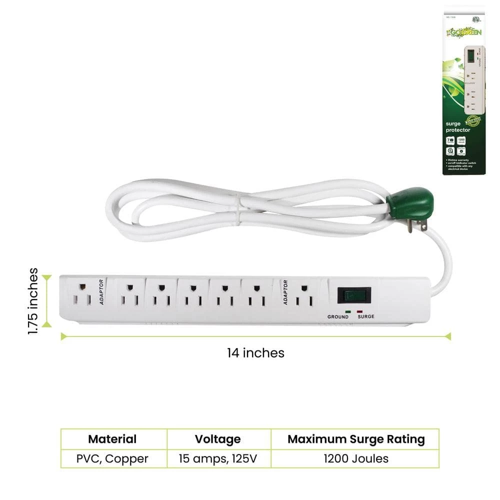 Industry-leading environmental awareness meets top-flight performance in the GoGreen Power 7-outlet surge protector. Packed with 1,200 joules of protection, a 15 Amp circuit breaker, EMI/RFI filters, and an on/off indicator switch, this surge protector offers everything needed to keep the most valuable electronics safe from power spikes, from computers to theater systems. ? All of our products are made from 100% recyclable material and are eligible for our free customer recycling program at iRecycled.com, proving GoGreen to be a leading lifestyle brand in the consumer electronics space. We are so confident that the premium quality of our products match their eco-conscious design that we offer a lifetime warranty for good measure. Leave your supplier troubles behind and join the recycling revolution today. The planet needs us all to GoGreen together. We have all thrown our items in the trash, even though it always says on the package dispose of properly. Everyone wants to recycle, but not change their lifestyle. We want to make it easy for you to recycle comfortably from your home or office. Its Free. Enter our Power By GoGreen code at www.iRecycled.com