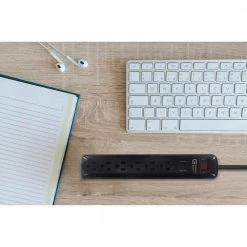 Commercial Electric 8 ft. 6-Outlet Surge Protector with 45 Degree Flat Angle Plug, Black