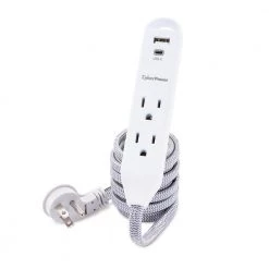 CyberPower 6 ft. 15-Watt 3-Outlet Surge Protector USB-A 2.4 Amp USB-C 400 Joules Braid Cord