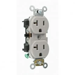 Leviton 20 Amp Industrial Grade Heavy Duty Self Grounding Duplex Outlet, Gray