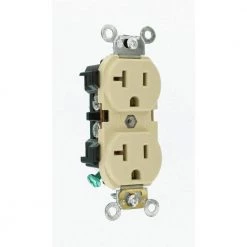 Leviton 20 Amp Industrial Grade Heavy Duty Self Grounding Duplex Outlet, Ivory