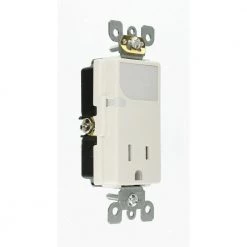 Leviton Decora 15 Amp Combination Single Outlet with LED Sensor Guide Light, White