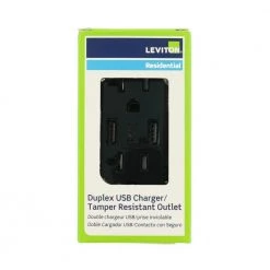 Leviton Decora 20 Amp Tamper Resistant Duplex Outlet and 3.6 Amp USB Outlet Charger, Black