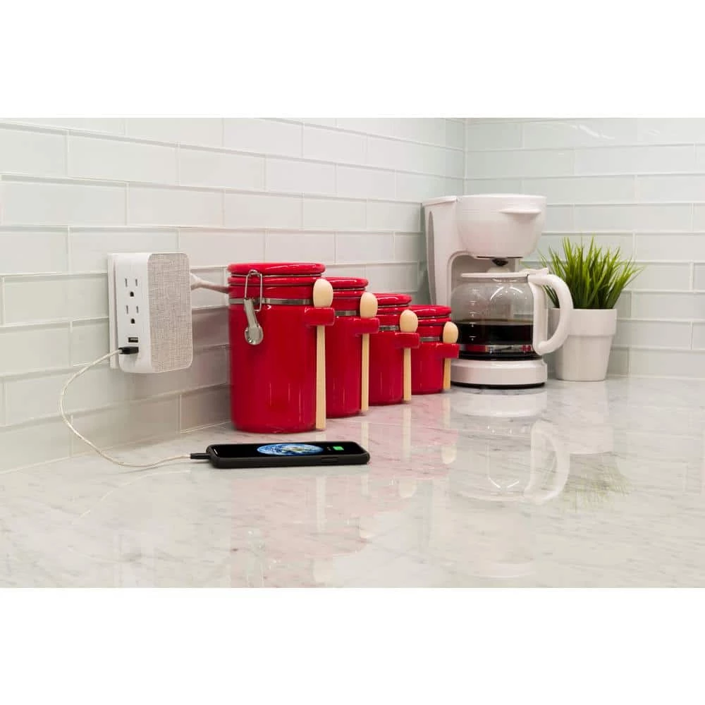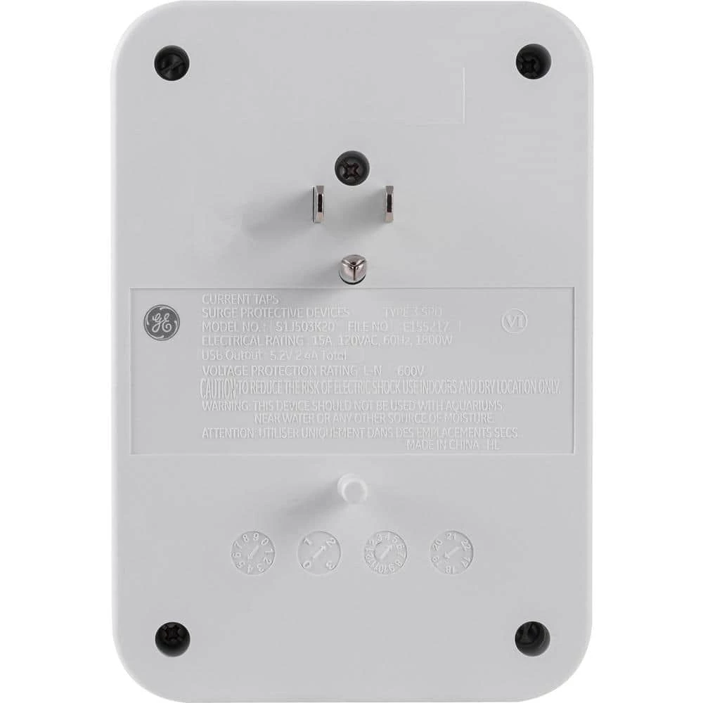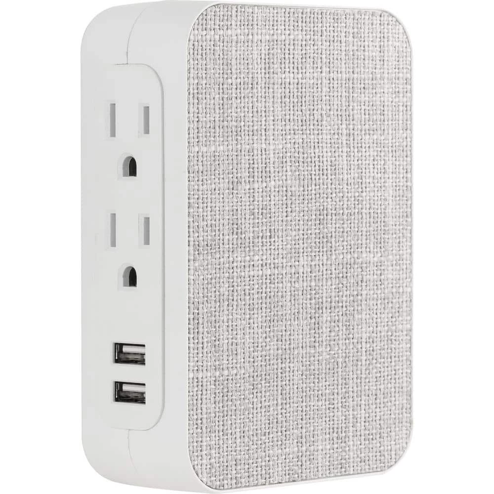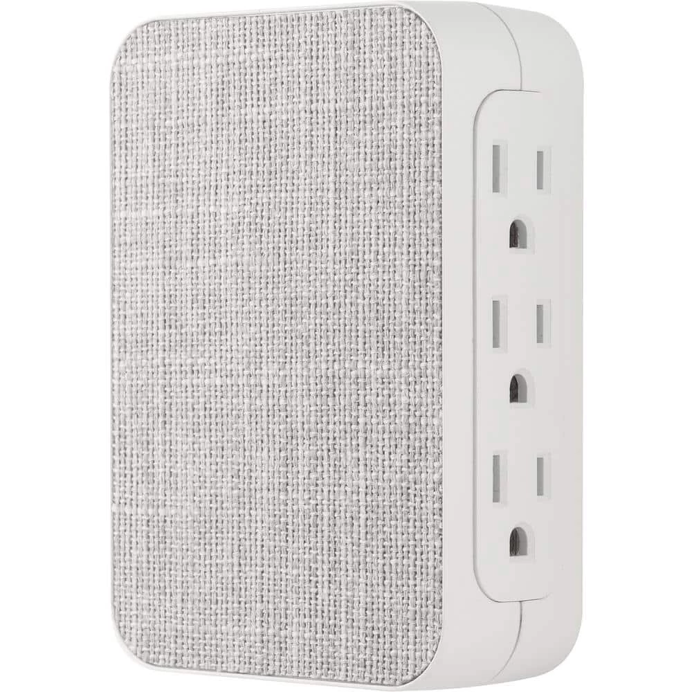 Power, charge and protect your devices all at once with the GE-branded Pro Side-Access Fabric Surge Protector. Featuring 5 outlets and 2 USB ports, this wall tap changes your ordinary outlet into an efficient and centralized powering station. And thanks to this wall taps unique side-access design, you get more accessibility to your outlets and USB ports in the tightest of spaces even behind furniture. Just plug the surge protector into a standard grounded duplex wall receptacle and you’re ready to go. This unit comes equipped with 560 Joules of surge protection and also features automatic shutdown technology to stop power to your devices once surge protection expires. And to top it all off, the grey and white crosshatched fabric panel, paired with the bright white finish of the wall taps outer case, provides a classy, aesthetic appeal. Whether its your home office, entertainment center or workspace, stay connected with a GE-branded Pro Side-Access Fabric Surge Protector.