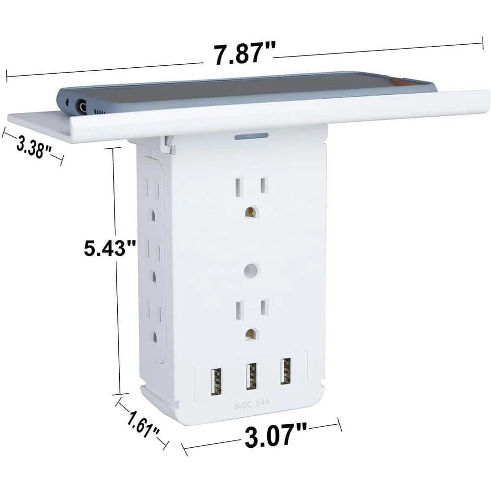 Keep all your devices organized and charged with this Wall Plug. This multi-functional wall plug has 8 AC outlets (15 Amp) with 1020J surge protector wall mount, 3 USB ports(5-Volt/3.4A total), surge protection indicator light. Suitable for all types of standard electrical outlets.
